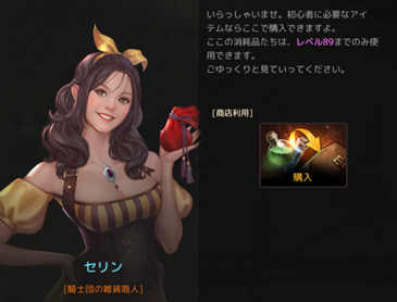 セリンは89レベルまで使用可能な消耗品を騎士団のコインで販売しています。
