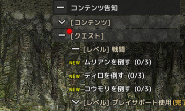 ▶クエストウィンドウが閉じている場合は、画面右側のコンテンツ通知ボタンをクリックしてください。