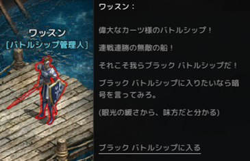 ブラックナイト前哨基地の船着場から移動すると、入場NPCと会うことができます。